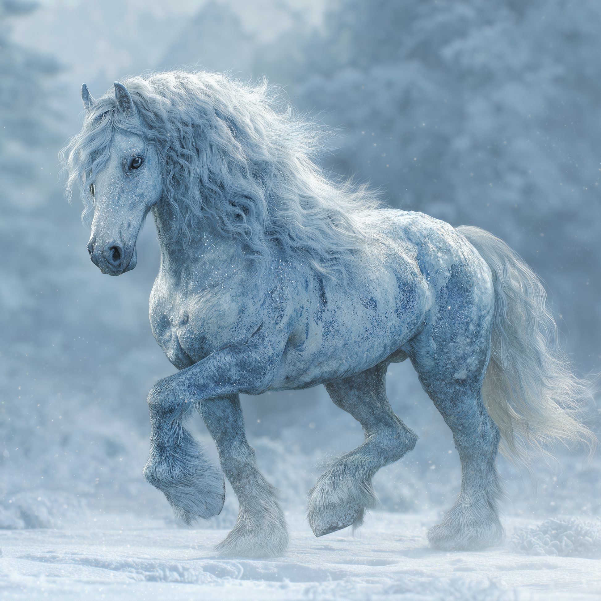 High Winds- Truly like a burst of cold wind that snaps you out of a brain fog, clears your mind and resets your energy. This skill brings a high level of energy clearing and rebalancing that drives stagnant and negative energy out and grounds you with refreshing and less limiting thoughts and feelings for a time. Of course, as humans, we tend to collect negative energy and get bogged down again in bleakness, so your Frost Stallion will take care of that for you at regular intervals, clearing your mind and making you feel less caught up in your own negativity. This skill often happens overnight while you sleep, allowing you to wake up refreshed and feeling good when it happens, but if things are particularly difficult for you it may happen while you are awake as well. You’ll notice nothing except the lifting of your spirits and the the seemingly sudden brightening of your mood.